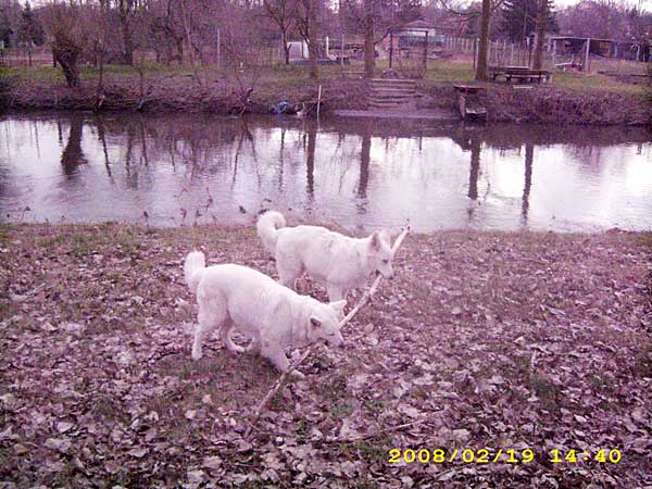 Bruce-Lee und Keona mit Stock |
