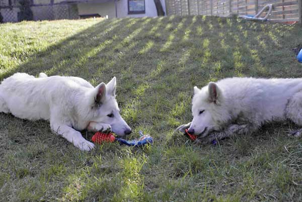 Im Hundehänger kann ich auch schon ohne Probleme fahren. Mein Hunderudel hat mir schon eine Menge beigebracht, am liebsten jage ich den Schwarzen über den Hof und spiele mit ihm kriegen.