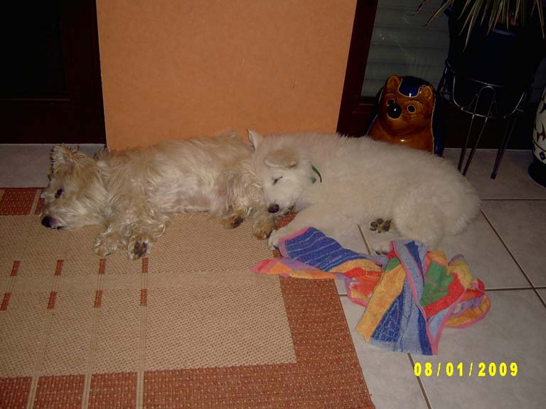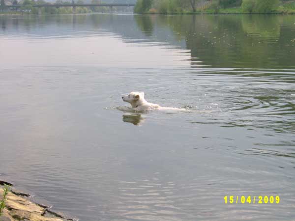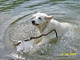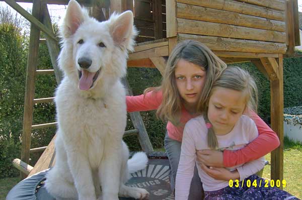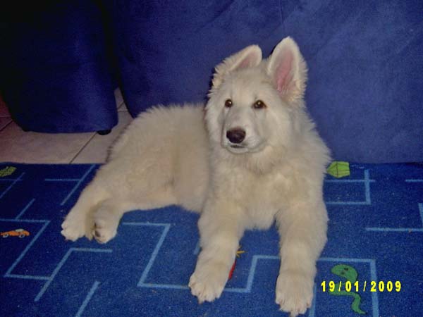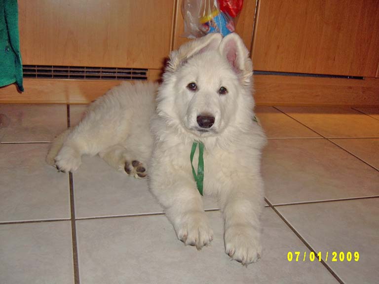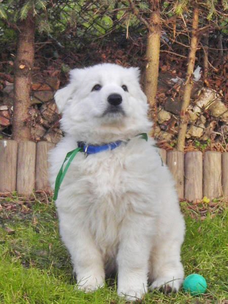 | Hallo Frau Ulrich, Chinnok wächst und gedeiht sehr gut. Er hat jetzt ca. 5 bis 6 kg zugenommen und natürlich auch an Größe zugelegt. Er hört auf die Kommandos "Sitz, Platz, und Hier, " schon sehr gut. Er gibt auch schon auf Kommando Pfötchen. Nachts ist er regelmäßig 7-8 Stunden ruhig und meldet sich dann morgens wenn er raus muß. Über Tag trinkt er sehr viel und muß in folgedessen auch fast jede Stunde raus. Chinnok ist sehr ruhig und zurückhaltend und macht sonst keine Arbeit. Beim Gassigehen hat er noch vor fahrenden Autos Angst, aber wir geben ihm Zeit, sich daran zu gewöhnen. Die ganze Familie hat Chinnok sehr ins Herz geschlossen. |