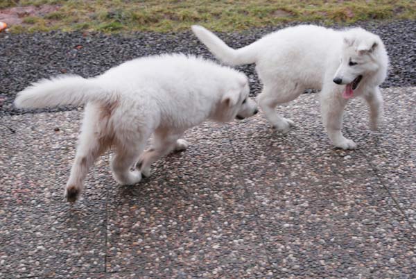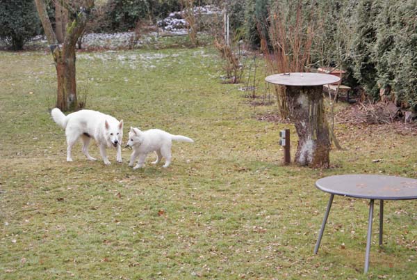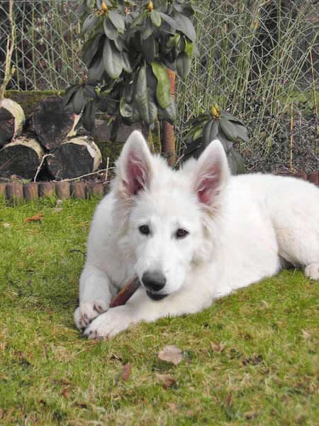Coralie ist eine sehr wilde Hündin. Mama hatte sie vollkommen im Griff. Sie lernt fleißig kann schon Sitz -Platz- Fuß- und Komm . Sie ist sehr verschmaust und kommt mit ihren Hunderudel super klar,nur bei fremden Hunden muss sie immer erst Bellen. Die Hundeschule tut ihr gut. Sie hat da schon einiges gelernt. |