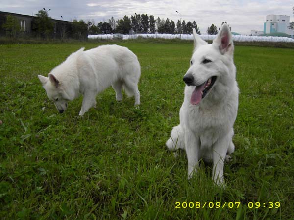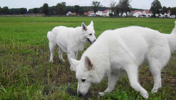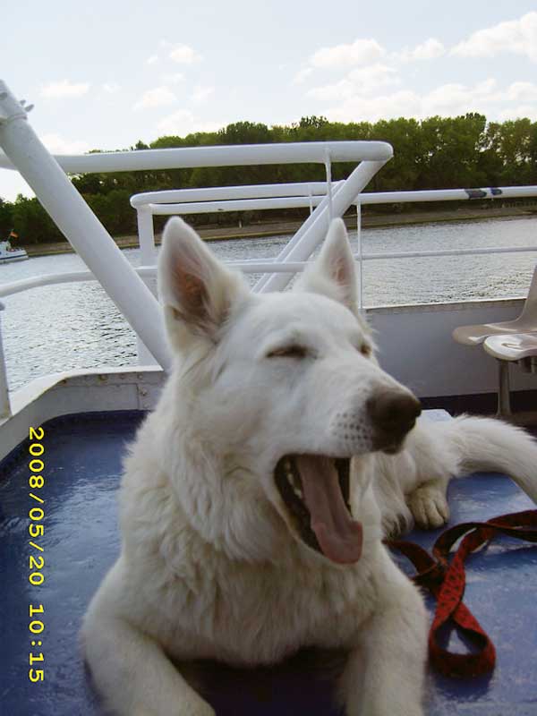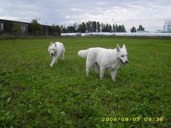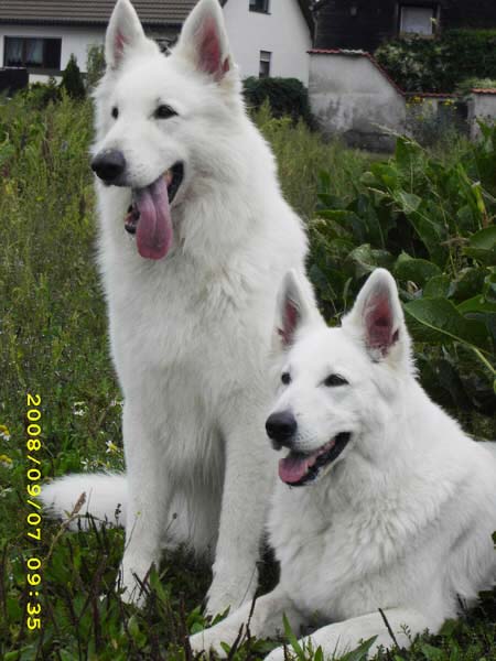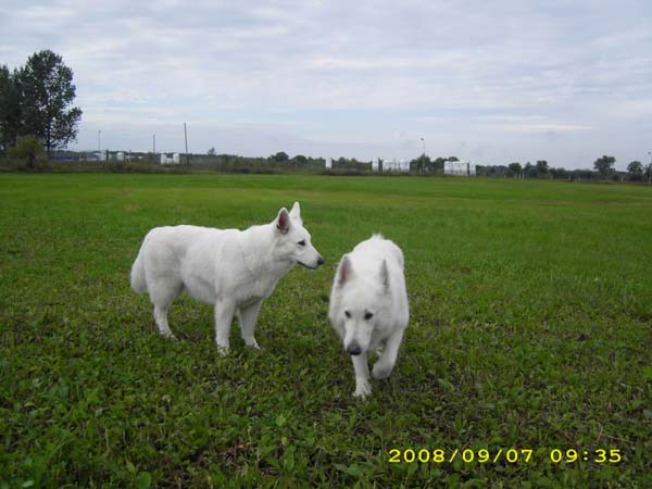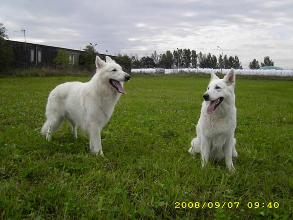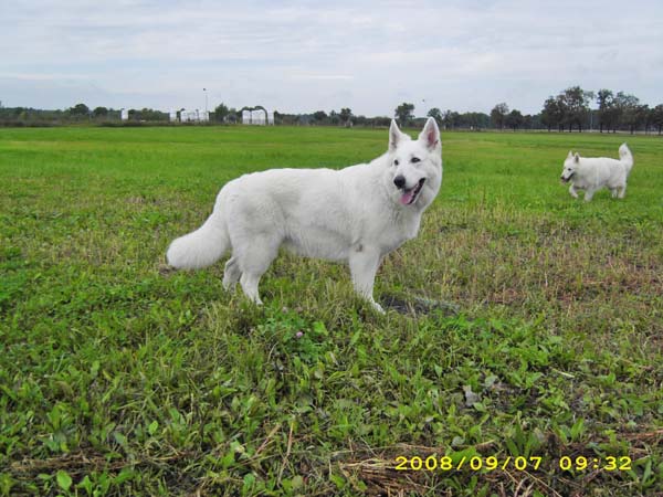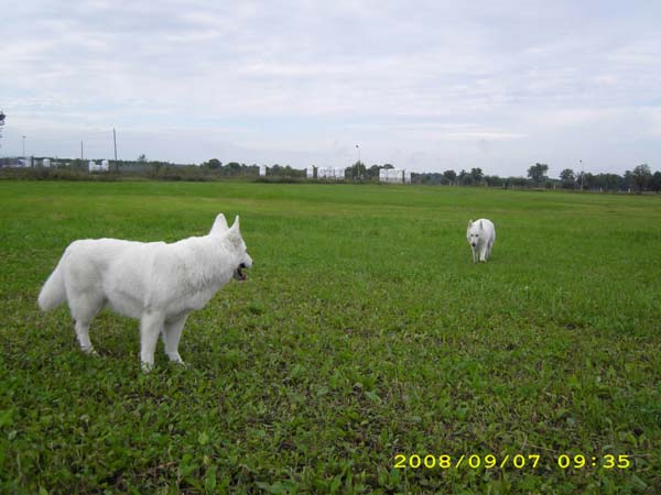 Er war sehr lieb zu mir - wie auch schon beim ersten. Mal (B-Wurf). Nach getaner Arbeit - wau - wau - wau!!! - waren wir noch eine Weileauf einer großen Wiese um uns zu entspannen. Wie Ihr in den Bildern sehen werdet, ging es uns ziemlich gut danach. Mein Frauchen denkt es werden wieder so sportliche, kraftvolle und familienfreundliche Welpen wie beim B-Wurf. Wir meinen das übrigens auch.