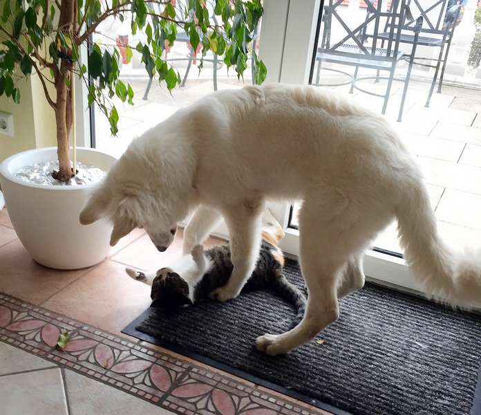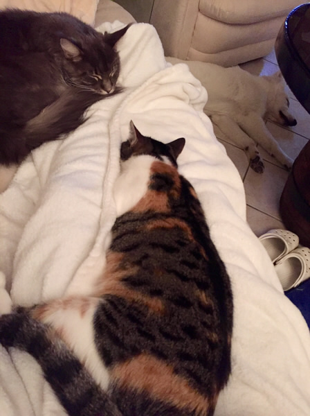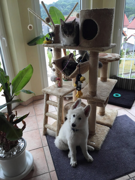 Falco mit seinen vierbeinigen Mitbewohner Jeany, Rocky & Freundin Laika |