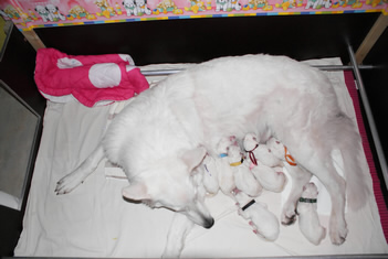 Denn Welpen geht es gut sie nehmen sehr gut zu. Mama geht es leider noch nicht so gut. Hat noch hohe Temperatur. Aber das wird schon.