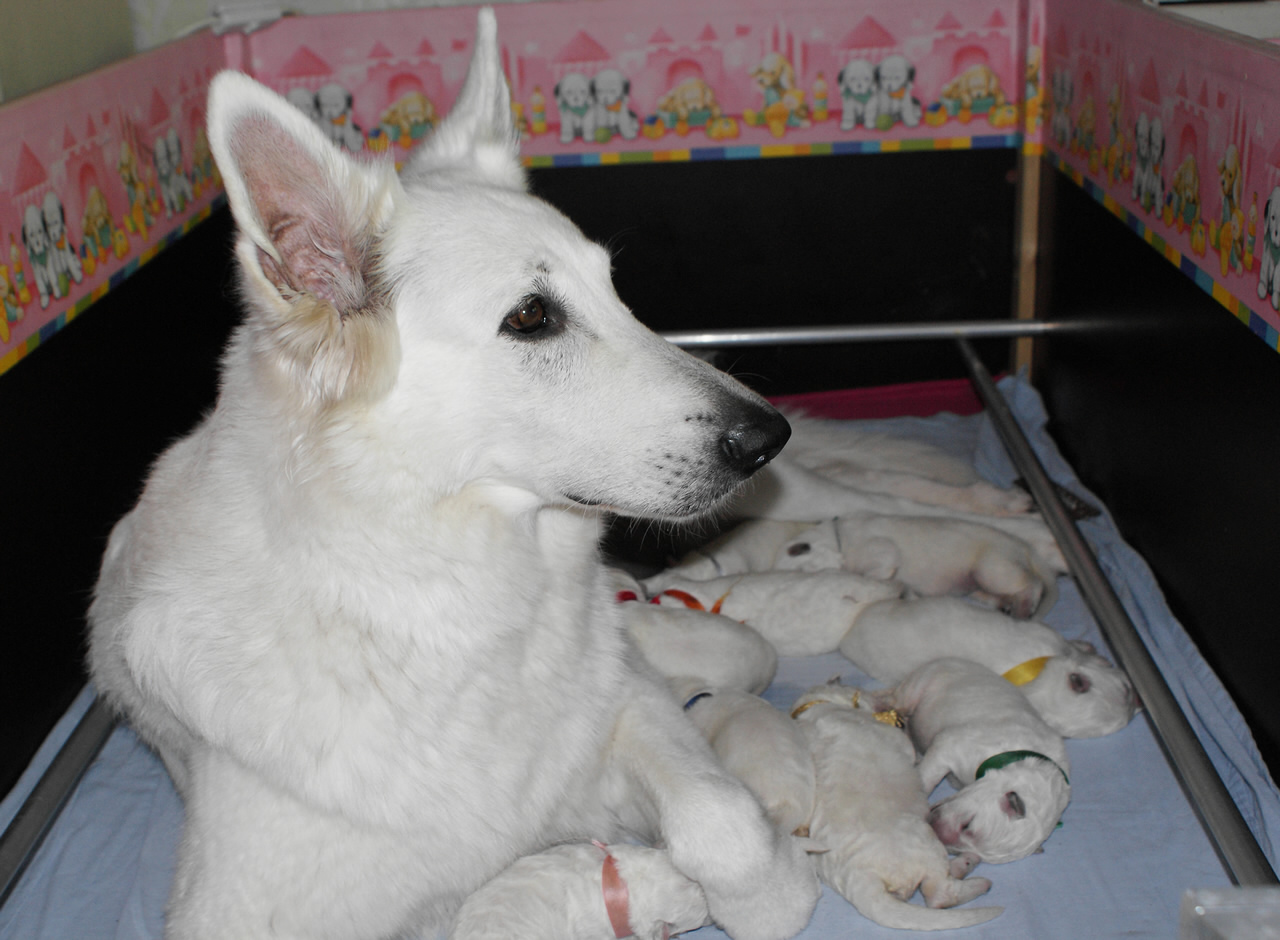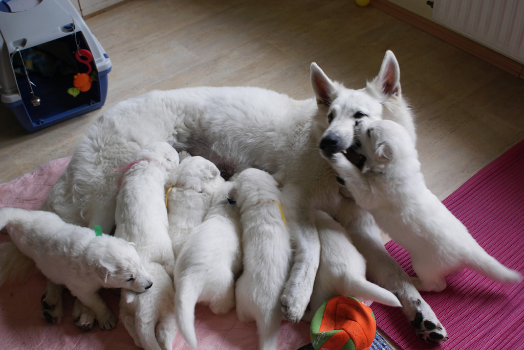 Coralie - Nice from the White Sweet Angel und Juan Aiko P'tits Loups d' Amour sind Eltern am 06.05.2015 von stolzen 9 Welpen geworden, davon sind es 6 Rüden und 3 Hündinnen |