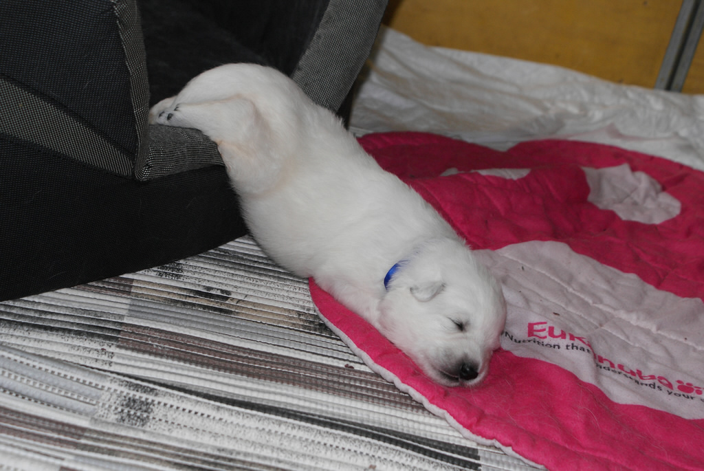 Tag 10 & 11 am 15.05 & 16.05.2015 Heute möchte ich mich mal vorstellen ich das heißt Silber Namen bekommen wir erst nächste Woche. Ich bin der kleinste von allen Rüden Mama Coralie und Frauchen Silke & Oma Steffi passen ganz toll auf mich auf das die großen Dicken mich nicht so unter buttern. Deshalb kann ich so entspannen. Oma Keona ist auch immer mit dabei. Langsam machen wir die Augen auf wie man an meiner Schwester Orange sehen kann. |