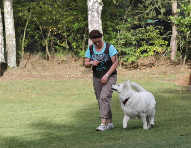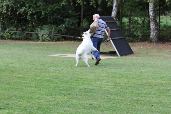 Bisher habe ich noch keinen Hund gehabt den ich nicht für die Unterordnung begeistern konnte. Und dann kam Coralie, die mich eines besseren belehrt hat, sie liebt Schutzdienst und deshalb mache ich mit ihr das was sie gerne möchte, den Unterordnung ist nicht so ihr ding. Keona macht Unterordnung sehr gerne. |