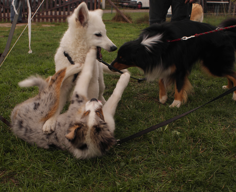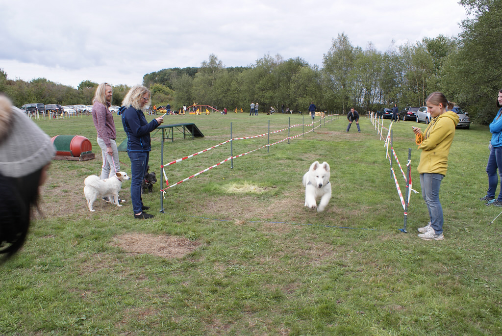 Das Sommerfest war wieder sehr schön mit vielen Eindrücken und Vorführungen, Agility, Obedience, Longieren, Dogdance & Hunderennen. Coralie hat diesesmal das Longieren Vorgeführt und hat bei Agility mit gemacht. Beim Hunderennen hat Coralie leider nichts gewonnen dafür hat Forrest in der Welpen Klasse den 1. Platz geholt. ( Herzlichen Glückwunsch ) Dieses mal sind dabei gewesen Dash mit Nicole ,Forrest - Gump mit Stefan & Nele, Fiona mit Verena & Familie, Mama Coralie & Oma Keona, Kerstin und Martin sind auch gekommen leider ohne Meucci !!! Vielen Dank das ihr gekommen seit !!! |