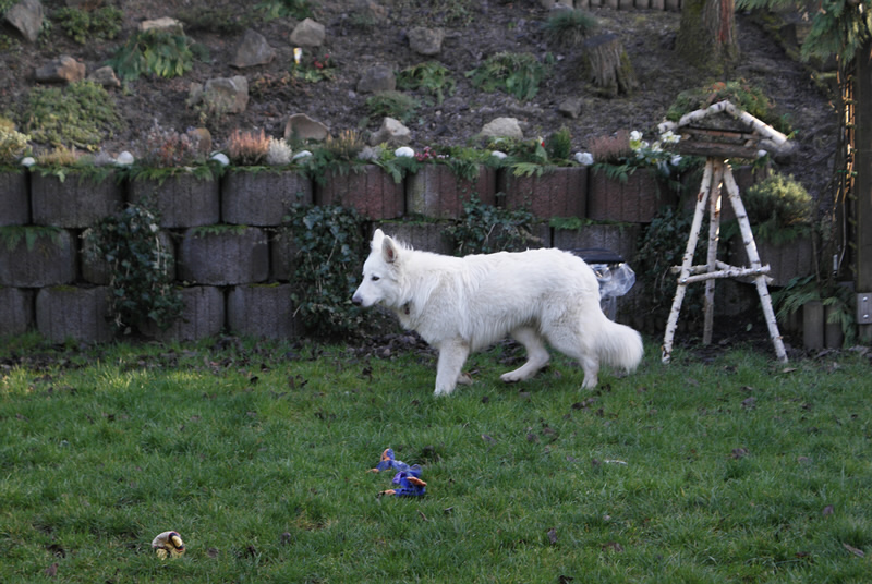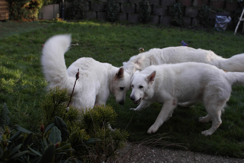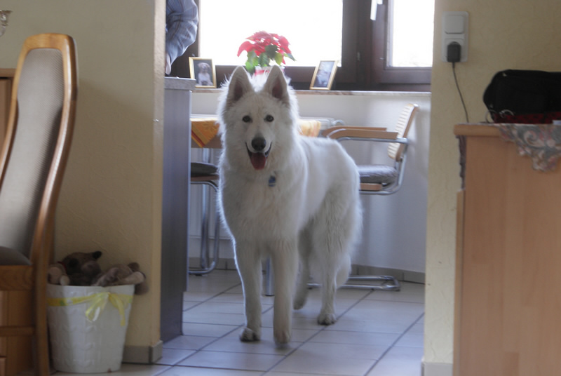 | Frauchen und Herrchen kamen Mittag 12.00 Uhr mit Destino bei uns an. Sind erst einmal eine Stunde Spazieren gegangen, hatten dabei sehr viel Spaß. Nun sind Frauchen und Herrchen mit meiner Züchterin weggefahren und ich bin bei Mama Coralie geblieben. Musste erst einmal wieder alles neu erkunden die Küche, Garten und das Wohnzimmer. |