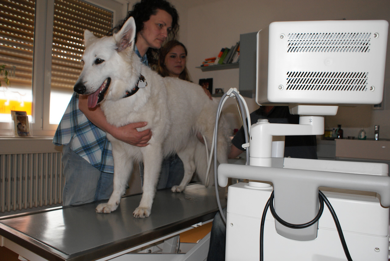 Hallo ich bin's Coralie Wollte mich mal wieder melden, mir geht es so la - la. Mein Bauch macht mir ein paar Probleme so dass mir das Essen zurzeit gar nicht schmeckt. Lust zum rumtoben habe ich auch nicht, gehe lieber schnuppern, außer wenn der Ball versteckt wird dann gehe ich ihn suchen. Frauchen sagt ich benehme mich schon so richtig wie eine werdende Mama. Und seit heute ist es ganz sicher dass ich Babys bekomme. Beim Ultraschall konnten wir schon 7 Babys zählen mal sehen was am Ende dabei raus kommt. Wau Eure Coralie ( am 07.04.2015 ) |