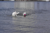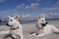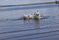 Urlaub an der Ostsee in Travemünde - Lübeck vom 14.8.2011 - 19.08.2011 Endlich war es wieder so weit Urlaub am Wasser für Keona und Coralie das schönste im Jahr. Wir sind ca. 21.00 Uhr dort oben angekommen, nach der langen Fahrt gab es nur noch einen kurzen Spaziergang. Am nächsten Morgen ging es los zum Wasser, die zwei konnten es kaum noch aushalten. Gott sei Dank hat das Wetter mit gemacht es gab die ganzen Tage nur Sonnenschein oder Bewölkung aber kein Regen. Es ging los mit Baden an unserem Lieblings strand, gab auch jede menge Wanderungen da zwischen gab es noch fahren mit Autofähre oder nur Personen Fähre. Essen für Hund und Mensch kam auch nicht zu kurz, oder baden am Hundestrand mit Rampe um ins Wasser zu kommen. Es gab wieder viel zu sehen und alle hatten sehr viel Spaß. |