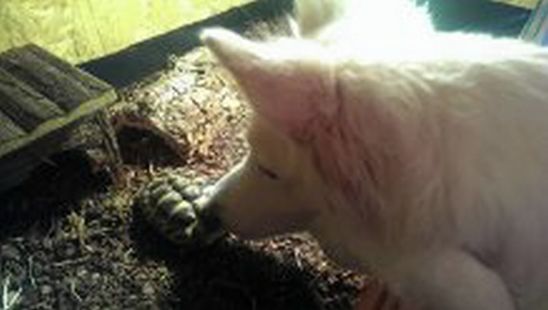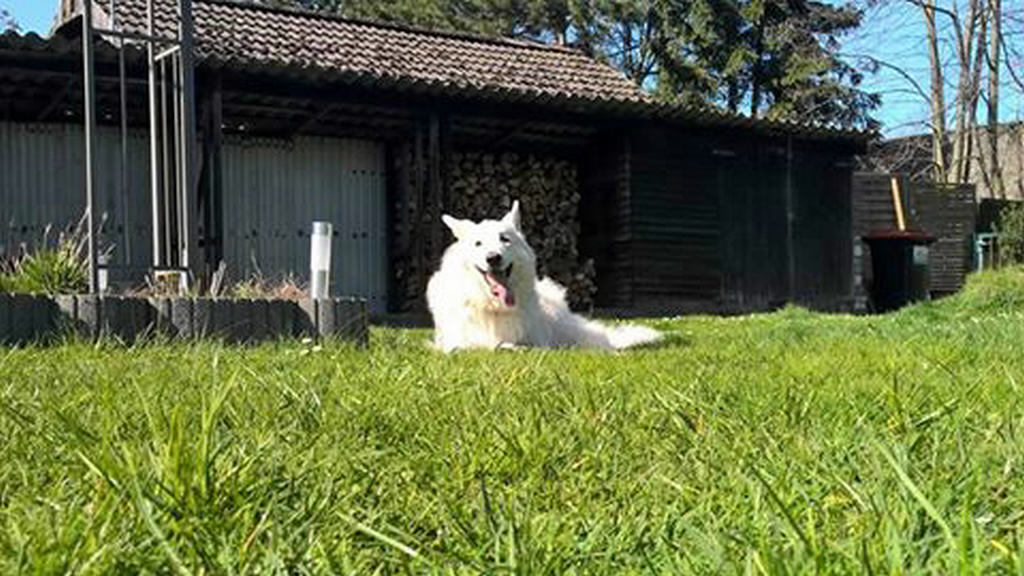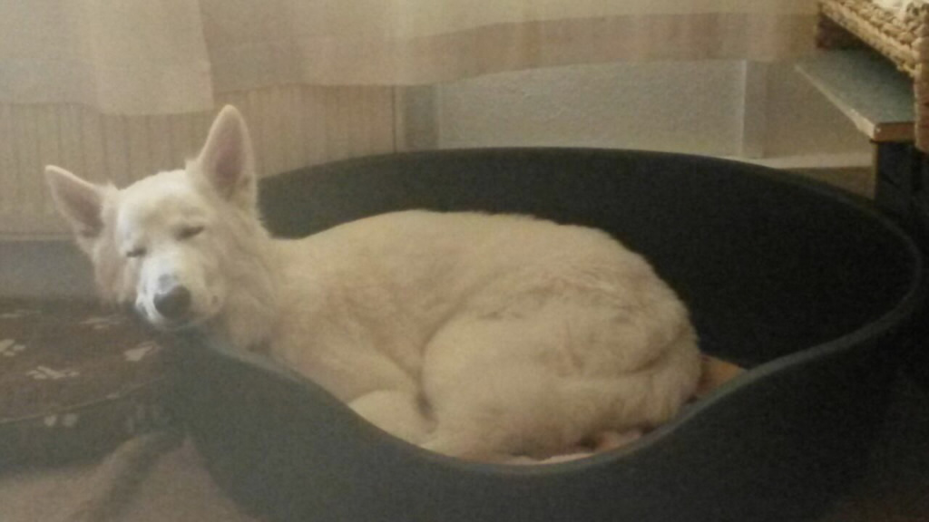 Amarok - Joy macht es sich im Garten gemüdlich und Elektra schläft lieber im Körbchen. |