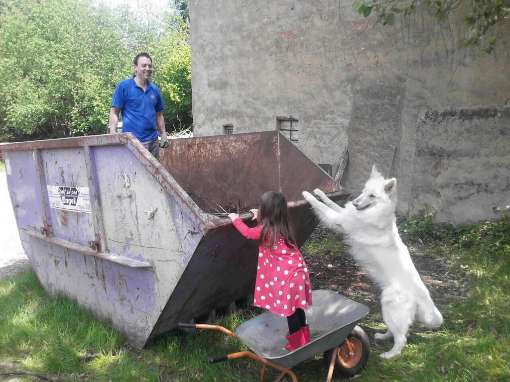 Merlin hilft bei der Arbeit & Elisha hingegen Arbeitet auf dem Hundeplatz mit Treibball. |