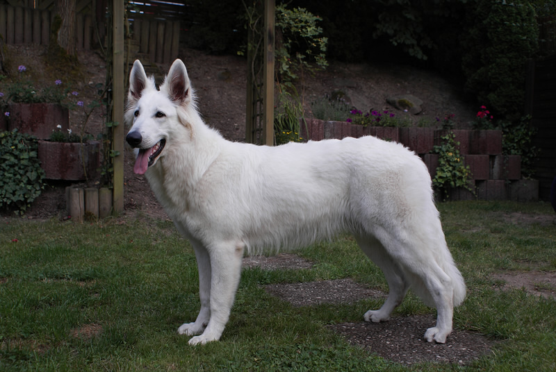 2. Zuchtzulassung von I. Bortel/ E. Balge Formwertbericht: Vorzüglich vom 28.05.2012 Große, mittelkräftige Hündin mit sehr schönem Typ und Ausdruck. Femininer Kopf, mit vollständigem Scherengebiss, mandelförmige Augen die dunkler sein sollten. Korrekt angesetzte und getragene Ohren. Harmonischer Oberlinienverlauf, die Kruppe ist von richtiger Lage und Länge.Sehr gute Winkellungen der Vor - und Hinterhand. Sehr schöne untere Profillinie. Gerade Front, fest im Vordermittelfuß. Raumgreifendes flüs-siges Gangwerk mit korrekter Folge und sehr gutem Vortritt. Sicheres aufgeschlossenes Wesen. Wesensbericht: Vorzüglich vom 28.05.2012 Coralie ist inzwischen eine ausgereifte, ausgeglichene Hündin geworden die sich in allen Situationen des tägl. Lebens behaupten kann. Ruhig und sicher wie eine Mutterhündin sein soll. |