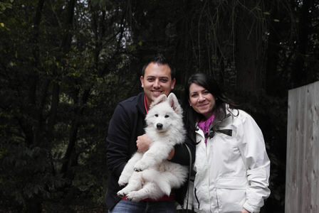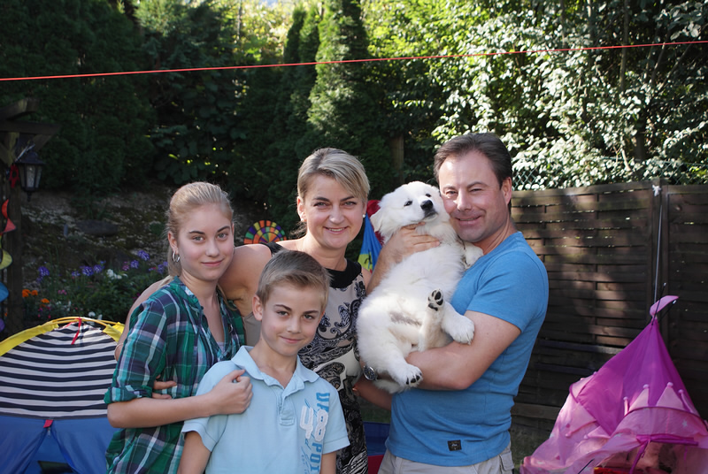 Die Welpen mit ihren neuen Besitzern