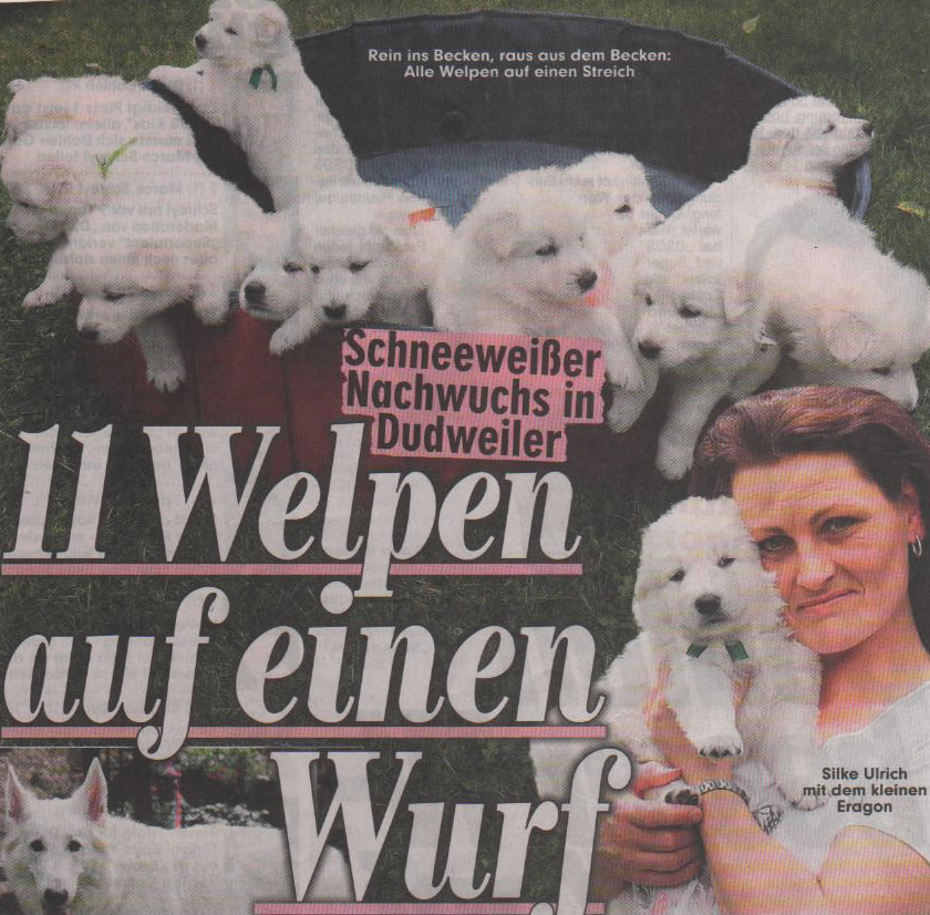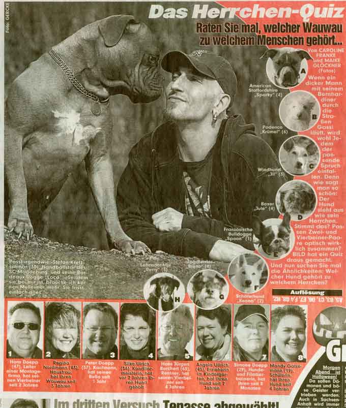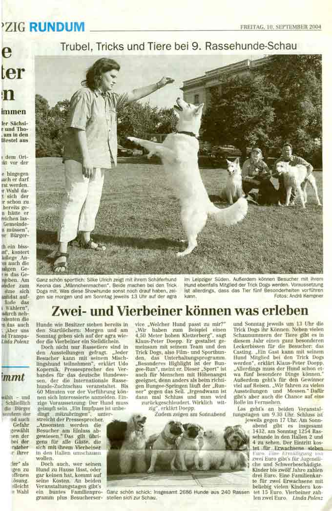 LEIPZIG RUNDUM 10.09.2004: "Trubel, Tricks und Tiere bei der 9. Rassehundeschau" – Silke Ulrich mit ihrer Hündin Keona (PDF) Bericht in der Bildzeitung Juni 2012 mit meinen 11 Welpen des E.- Wurfes |